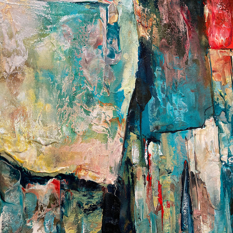 He is best known for his Savannah streetscapes and other dream like Lowcountry landscapes. He has a love for creating abstracts, which we find enchanting and the perfect compliment to many of our glassworks. Original acrylic on canvas with painted edges, signed on the front, wired and ready to hang.