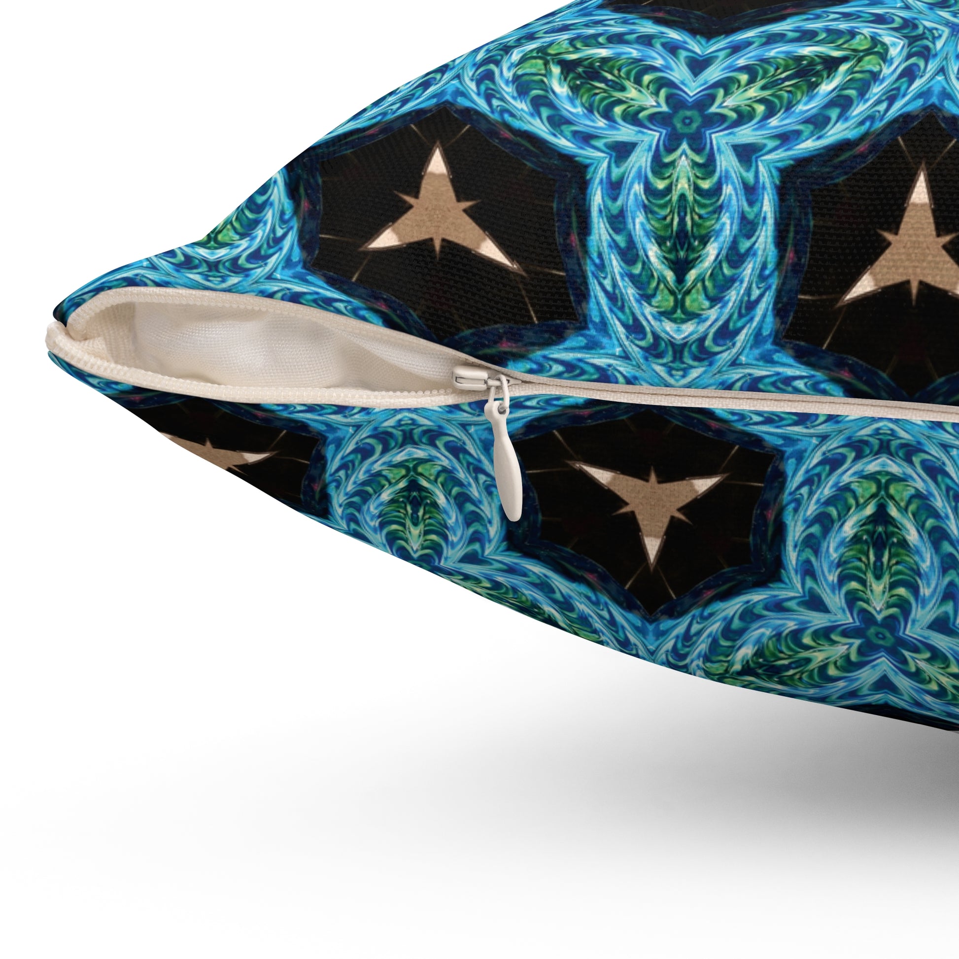 This striking pattern combines ocean blues and greens with an explosive energy of star like patterns. A sophisticated and unique pattern to finish off your favorite bedroom or seating area.