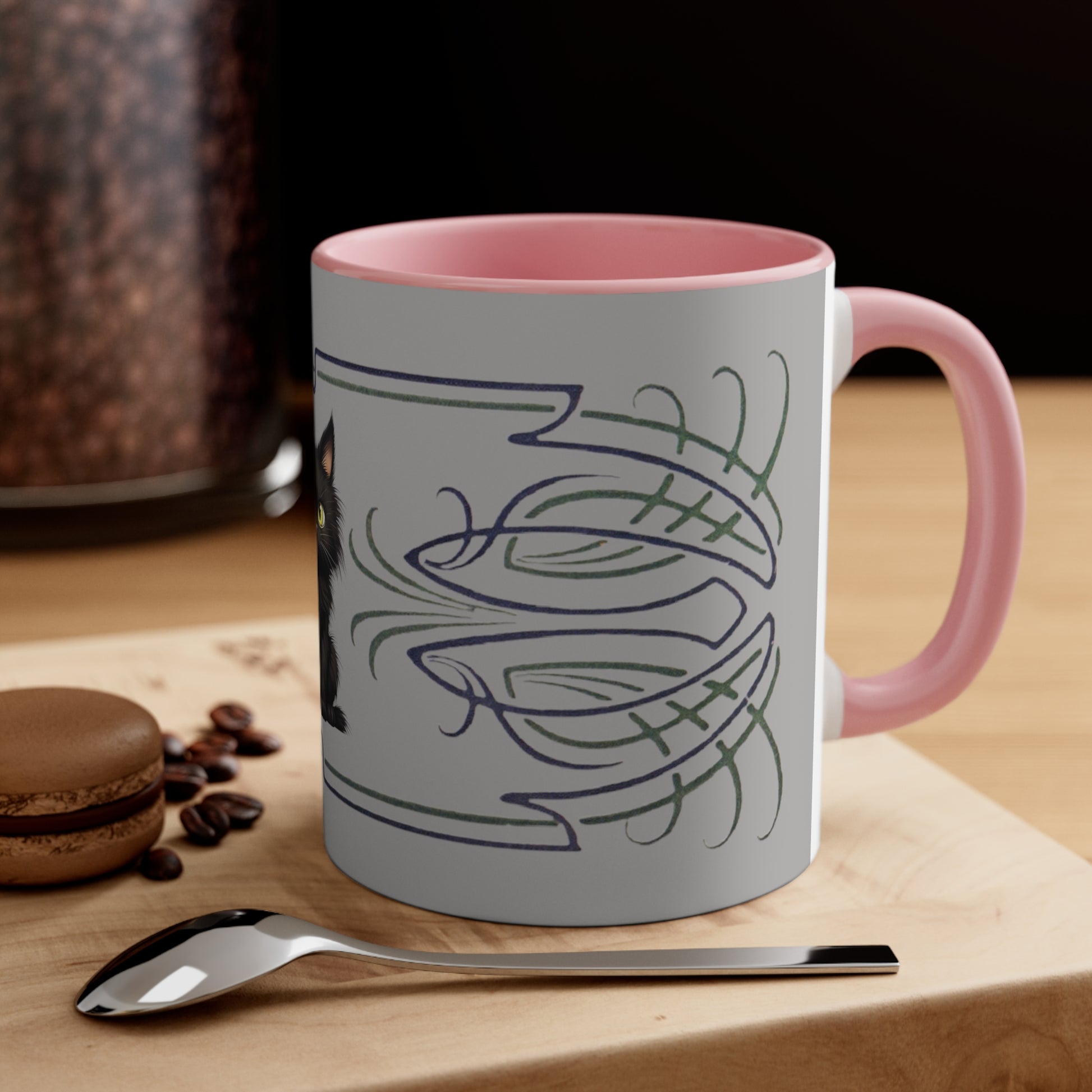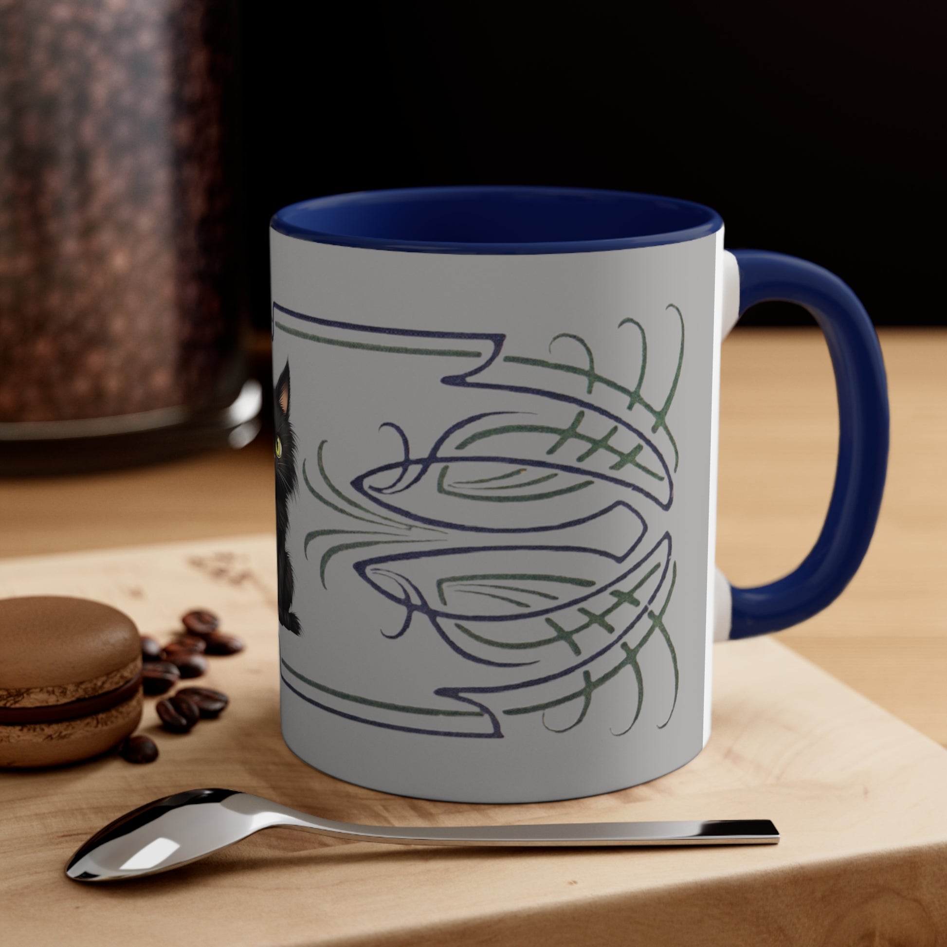 Classic Art Nouveau invaded by Alex the black cat. Alex has style and knew that nice frame had been made for him so he just made himself at home. Like cats do. Wake up in style with Alex.