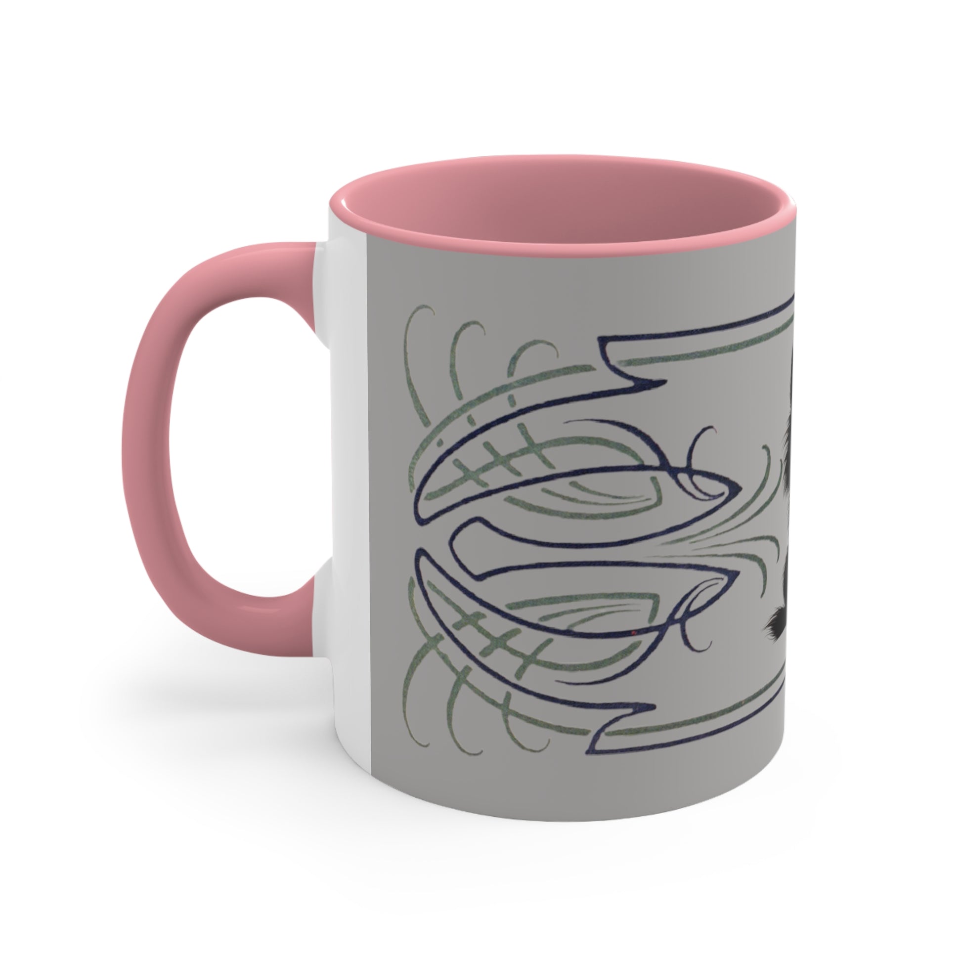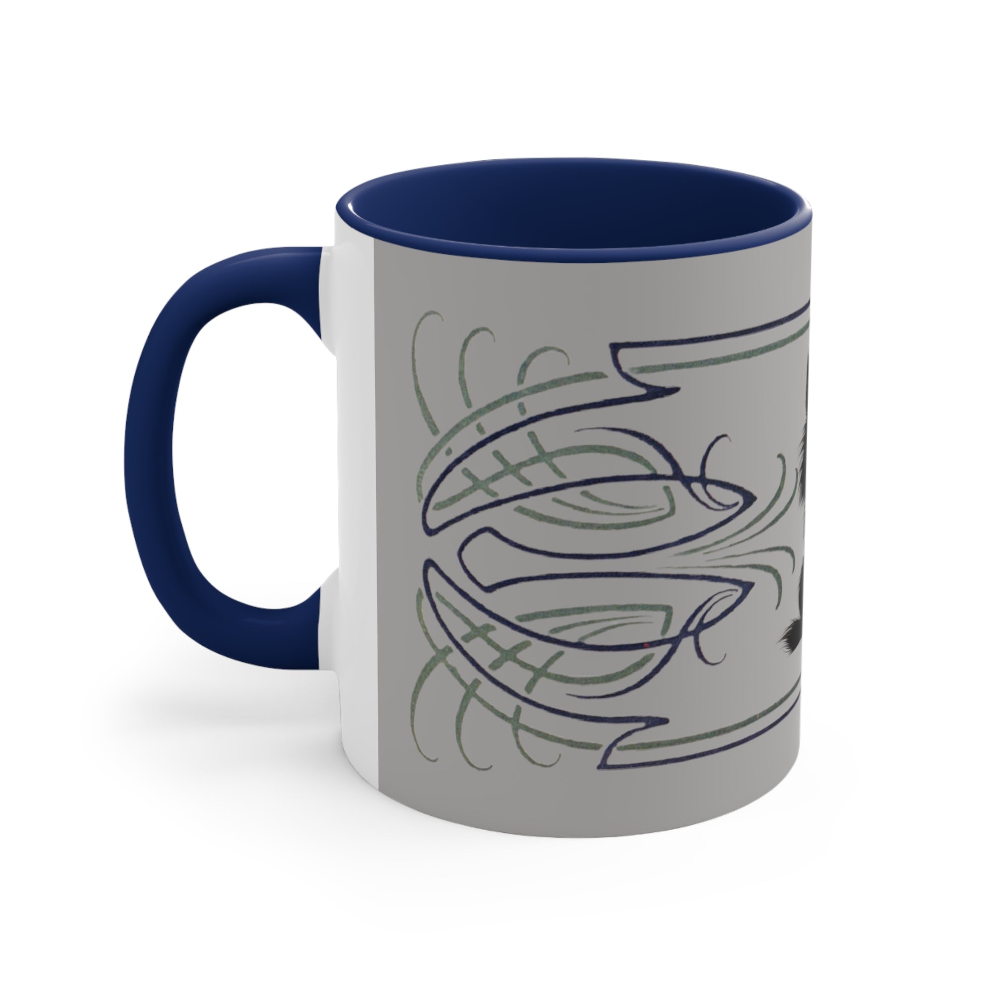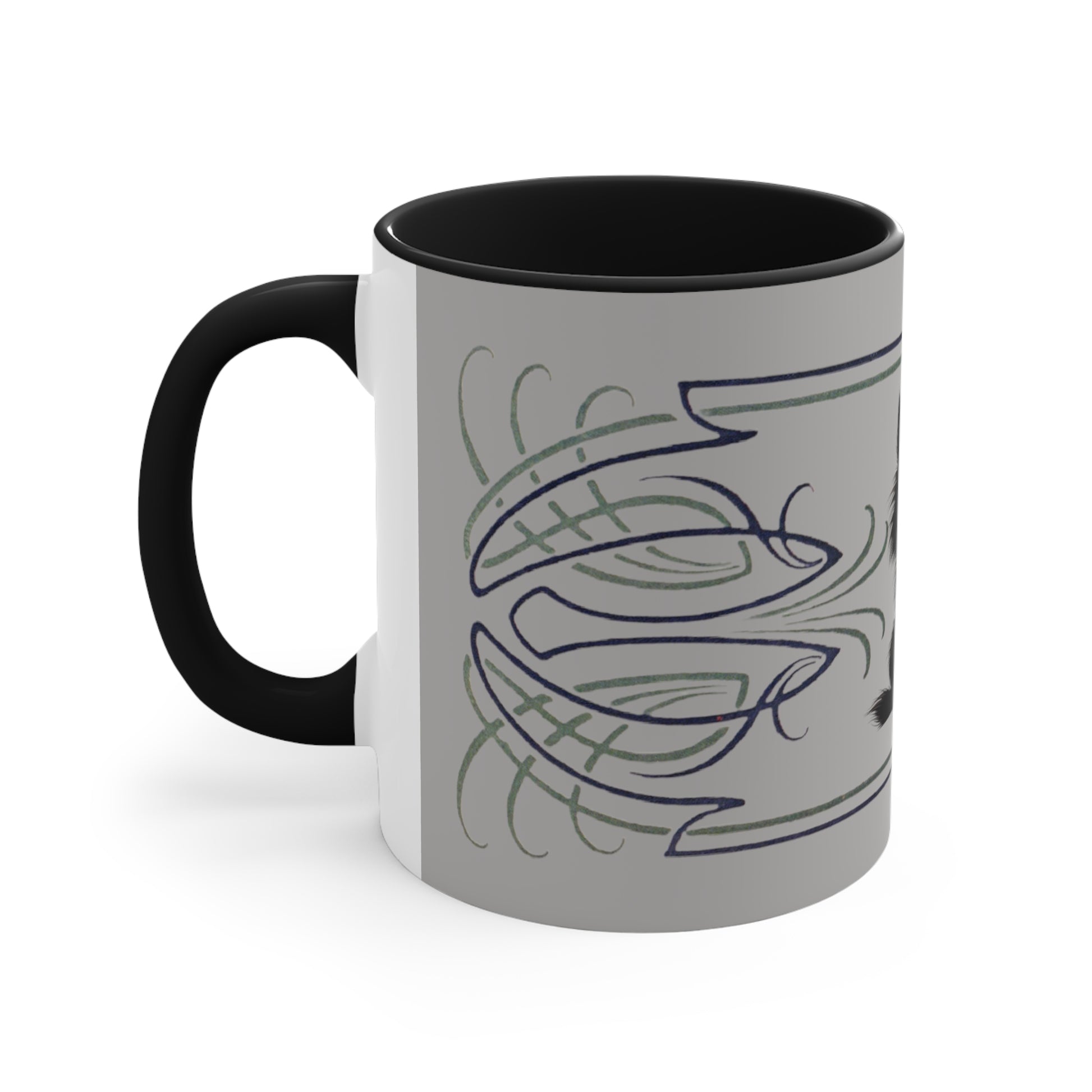 11 oz. ceramic mug with comfortable C-shaped handle. Mug is lead and BPA-free. Microwave and dishwasher safe.