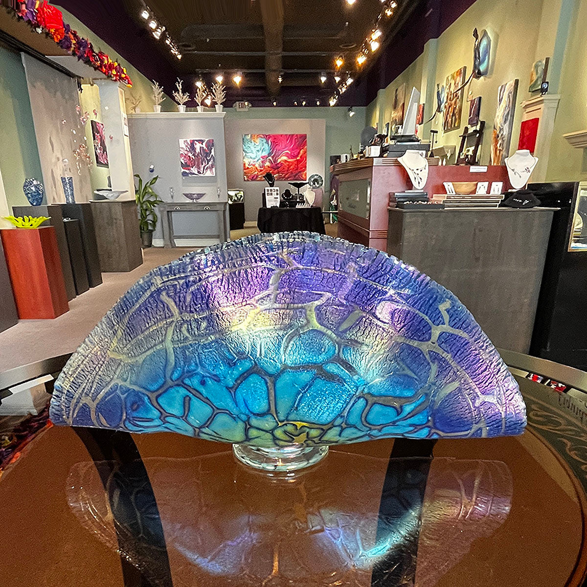 Experience the mesmerizing beauty of Cobalt Clamshells - hand-blown glass creations that exude radiance from within. A perfect accent to any space, these opalescent shells emit a captivating glow that will leave onlookers in awe. Its exterior's iridescence enhances the vibrant colors and adds an eye-catching touch to your decor. Be prepared to be dazzled by its inner brilliance and color variations, no matter the lighting or surroundings.