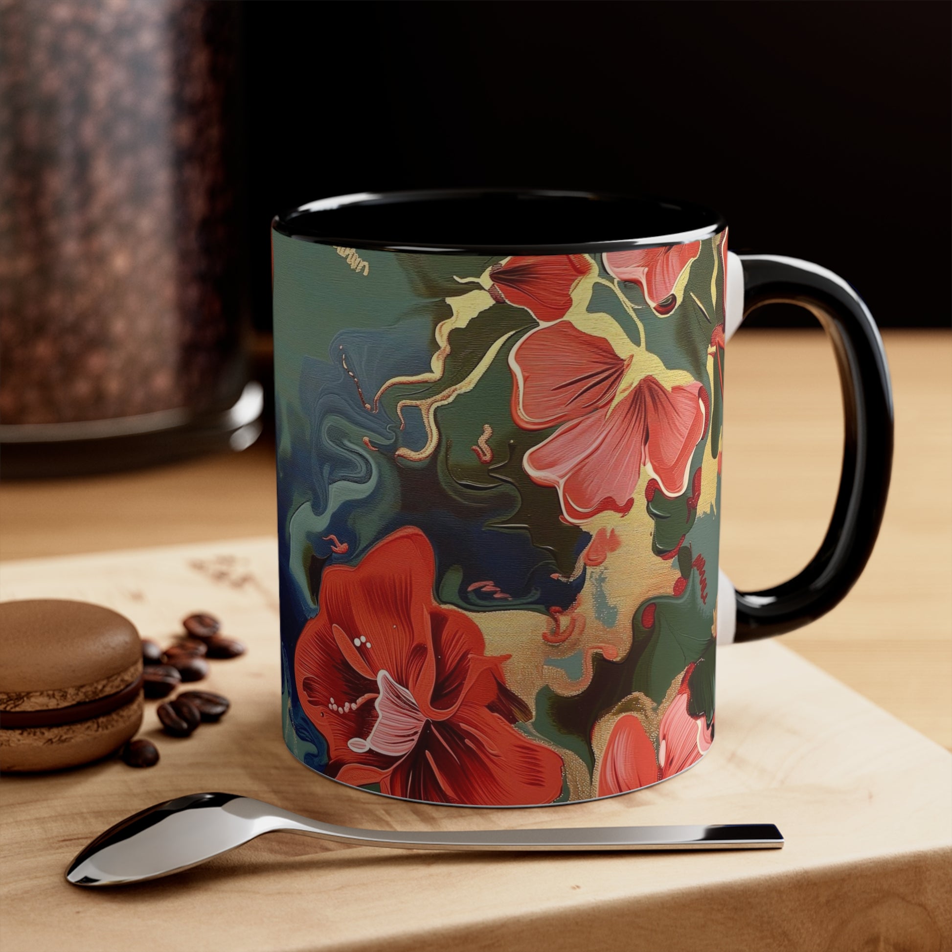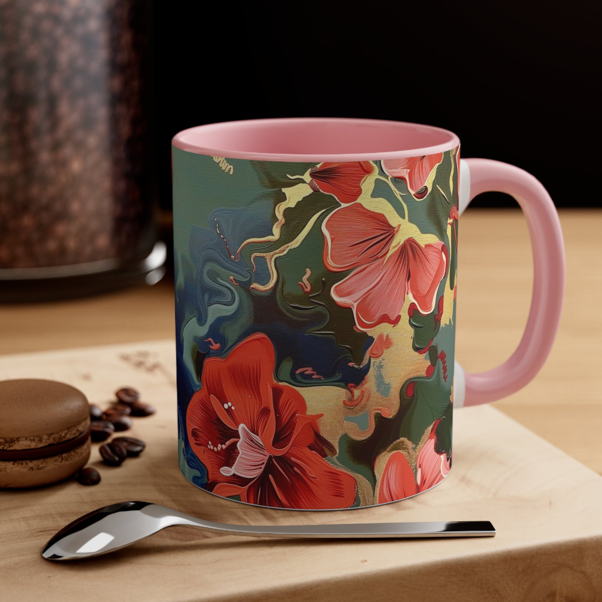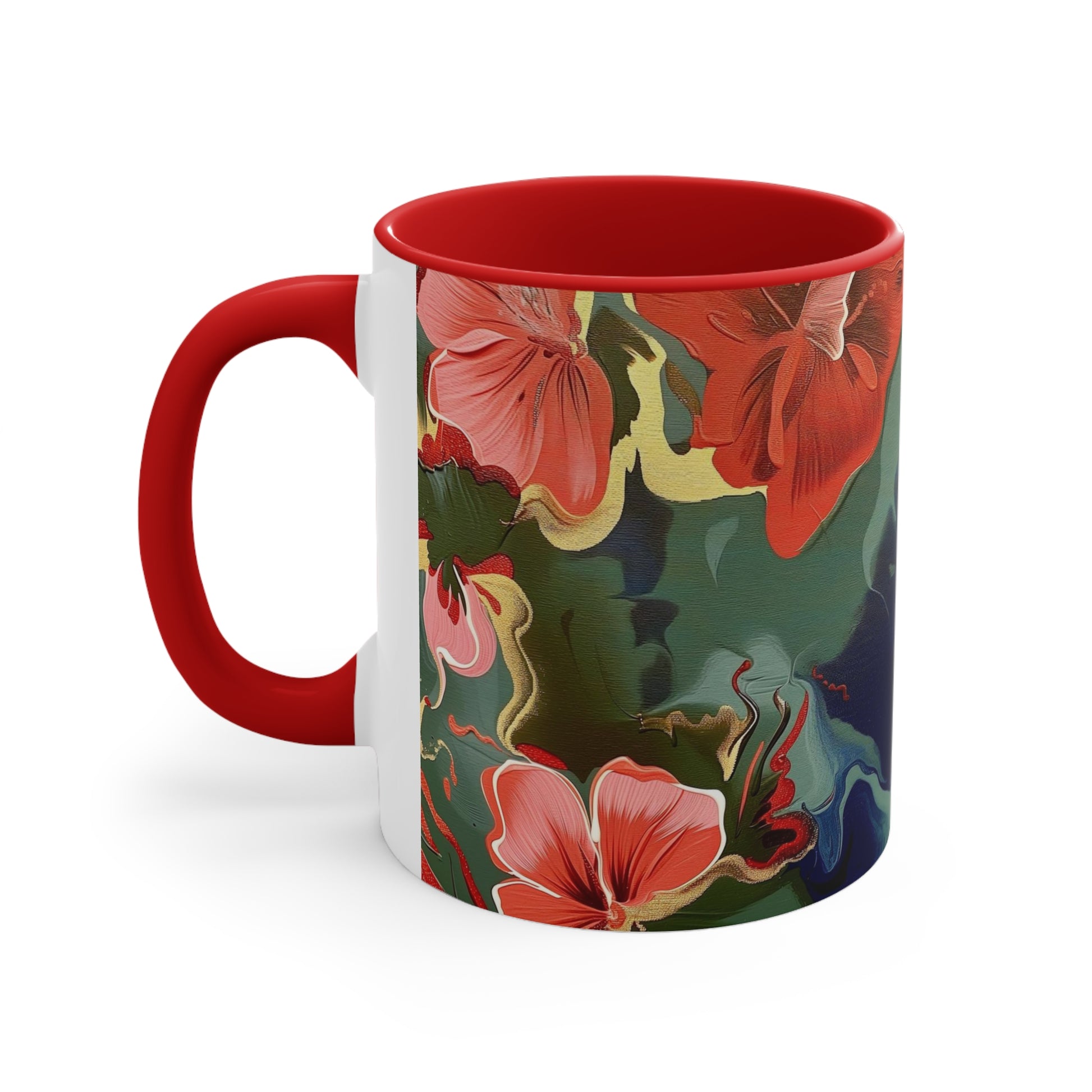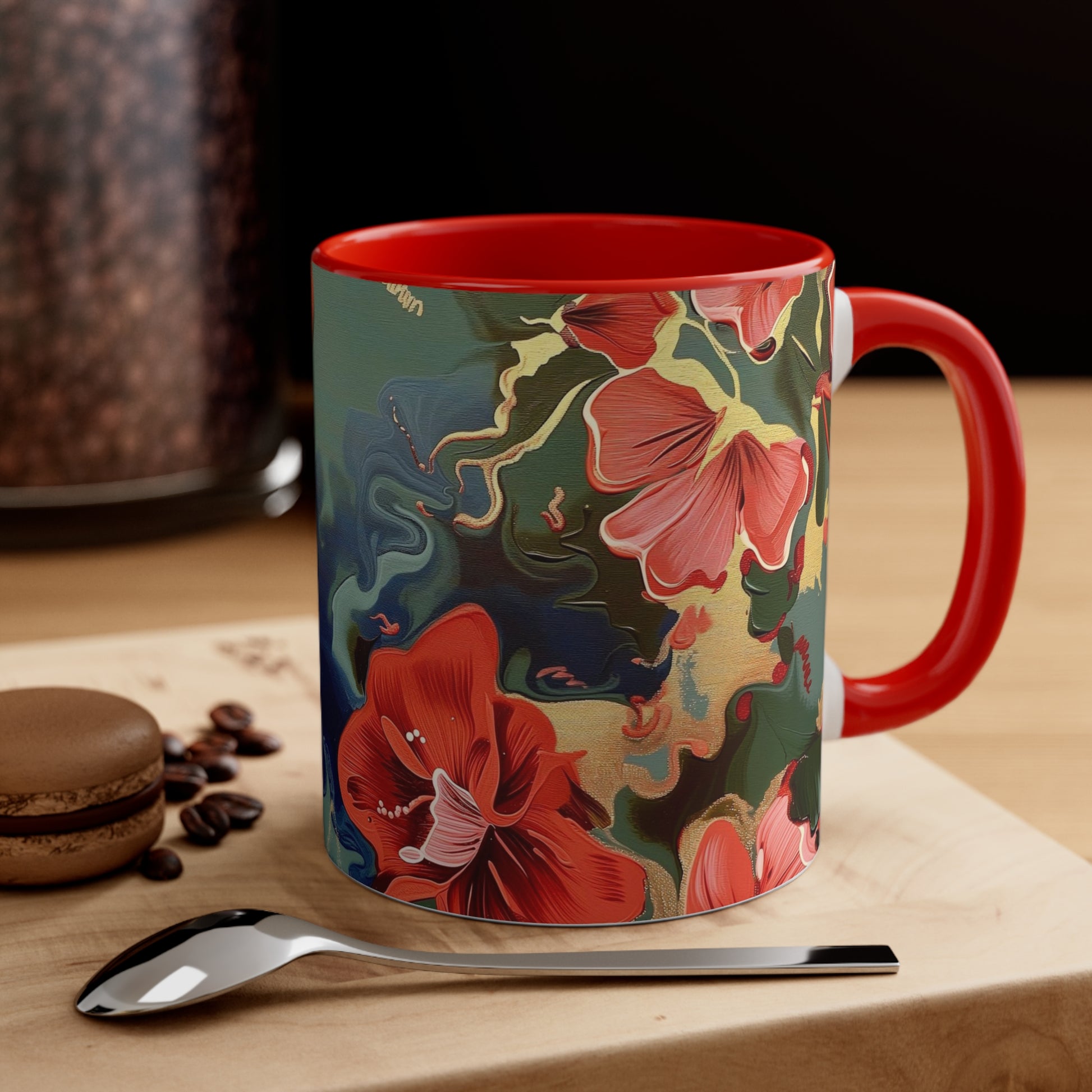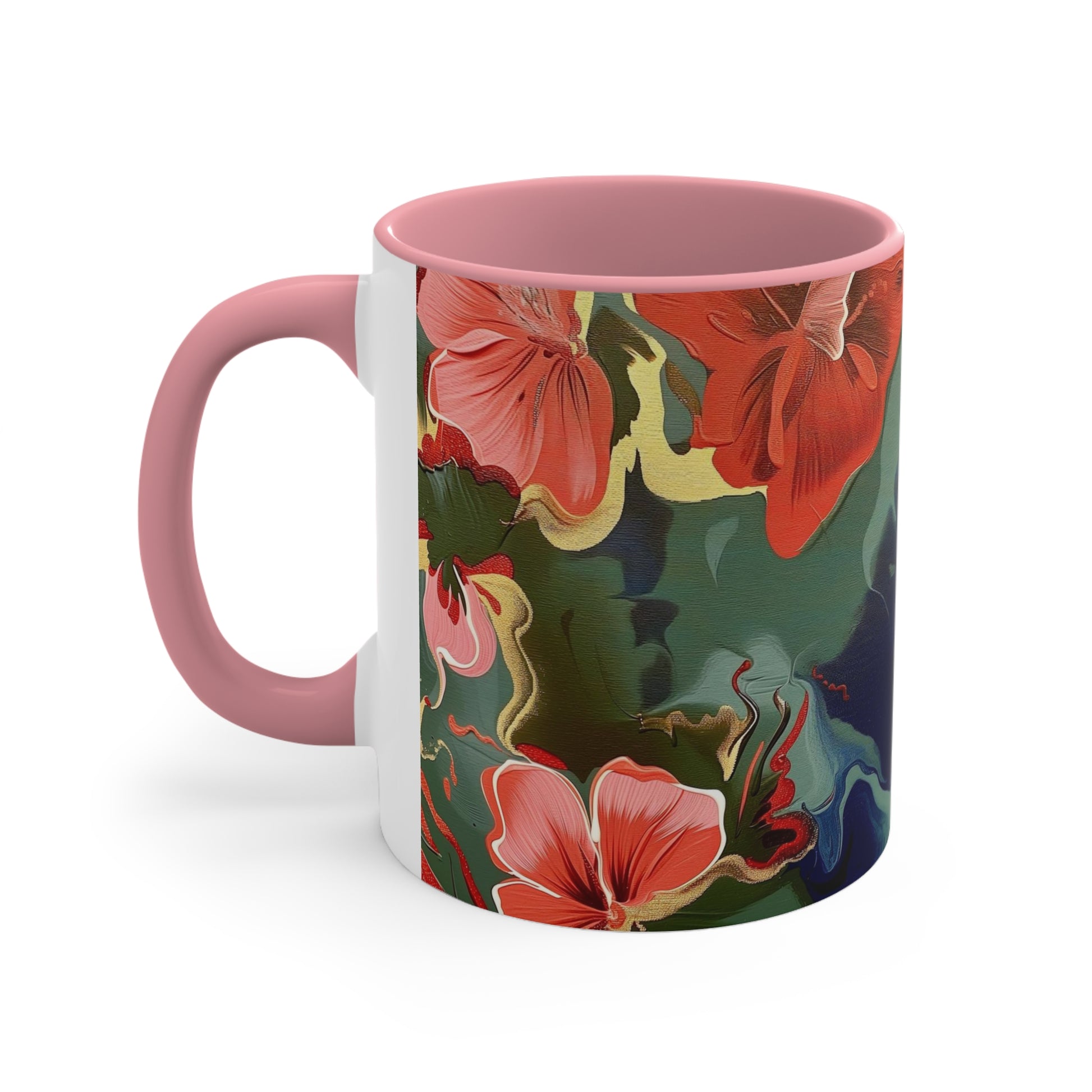11 oz. ceramic mug with comfortable C-shaped handle. Mug is lead and BPA-free. Microwave and dishwasher safe.