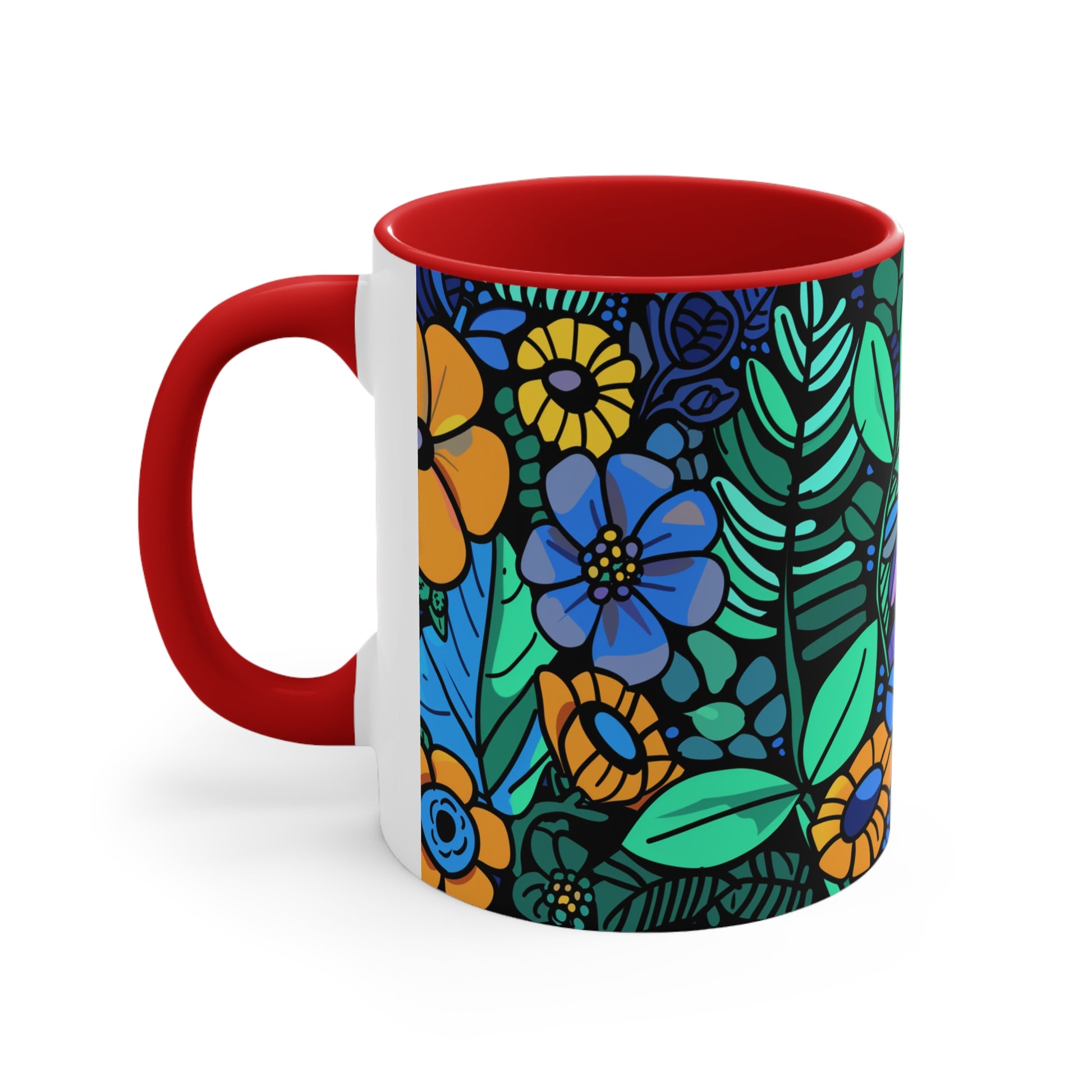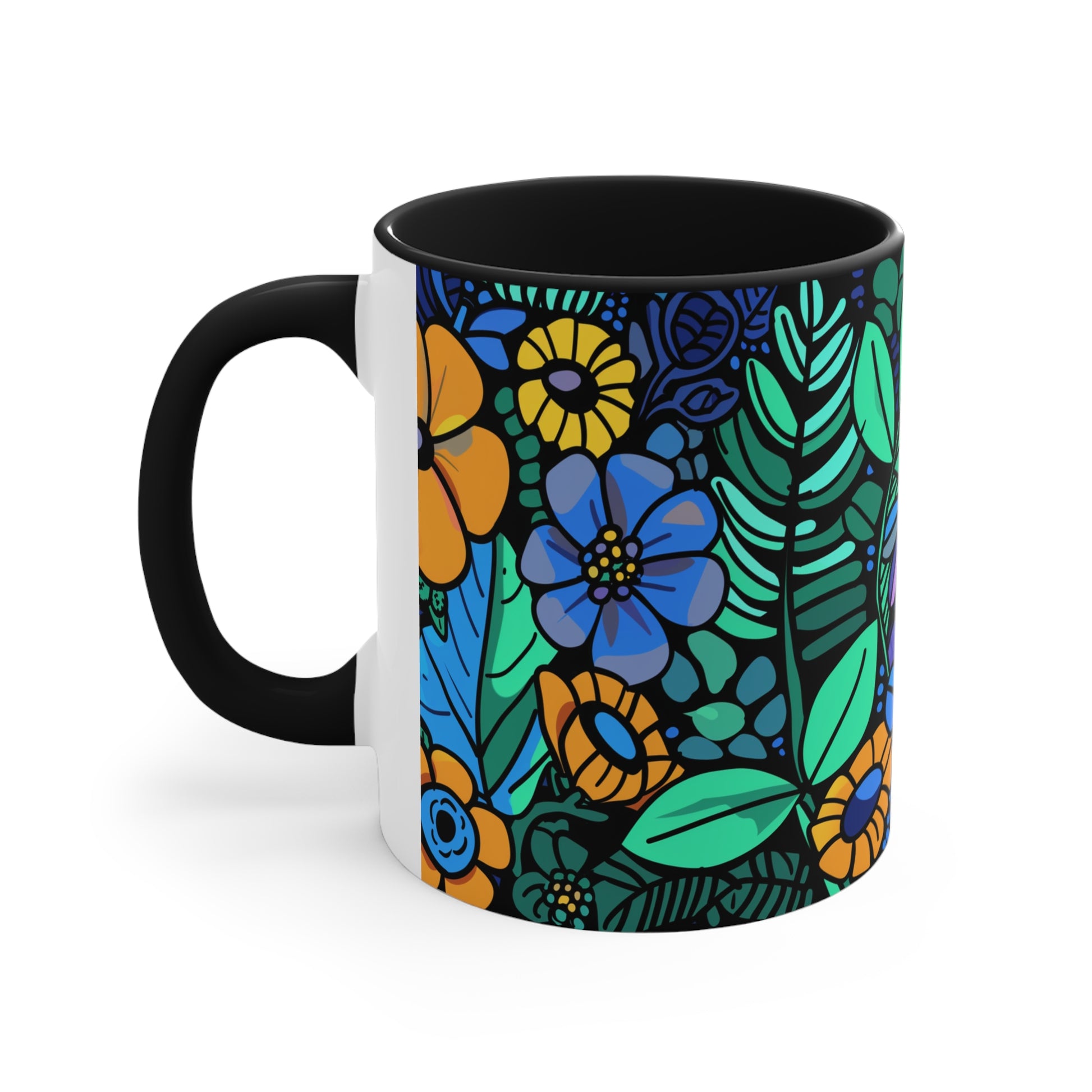 11 oz. ceramic mug with comfortable C-shaped handle. Mug is lead and BPA-free. Microwave and dishwasher safe.