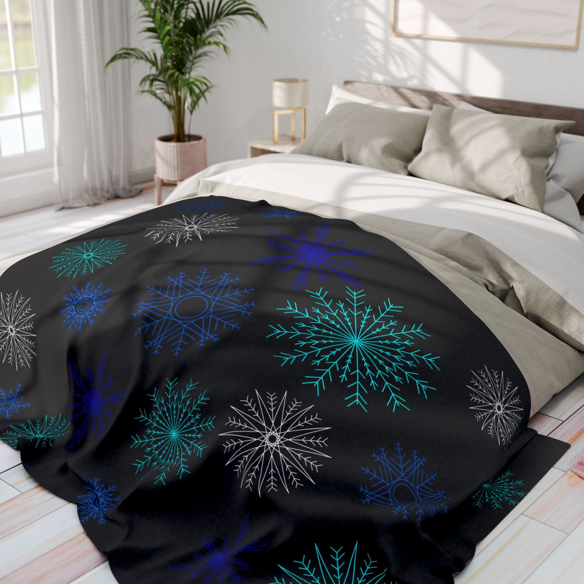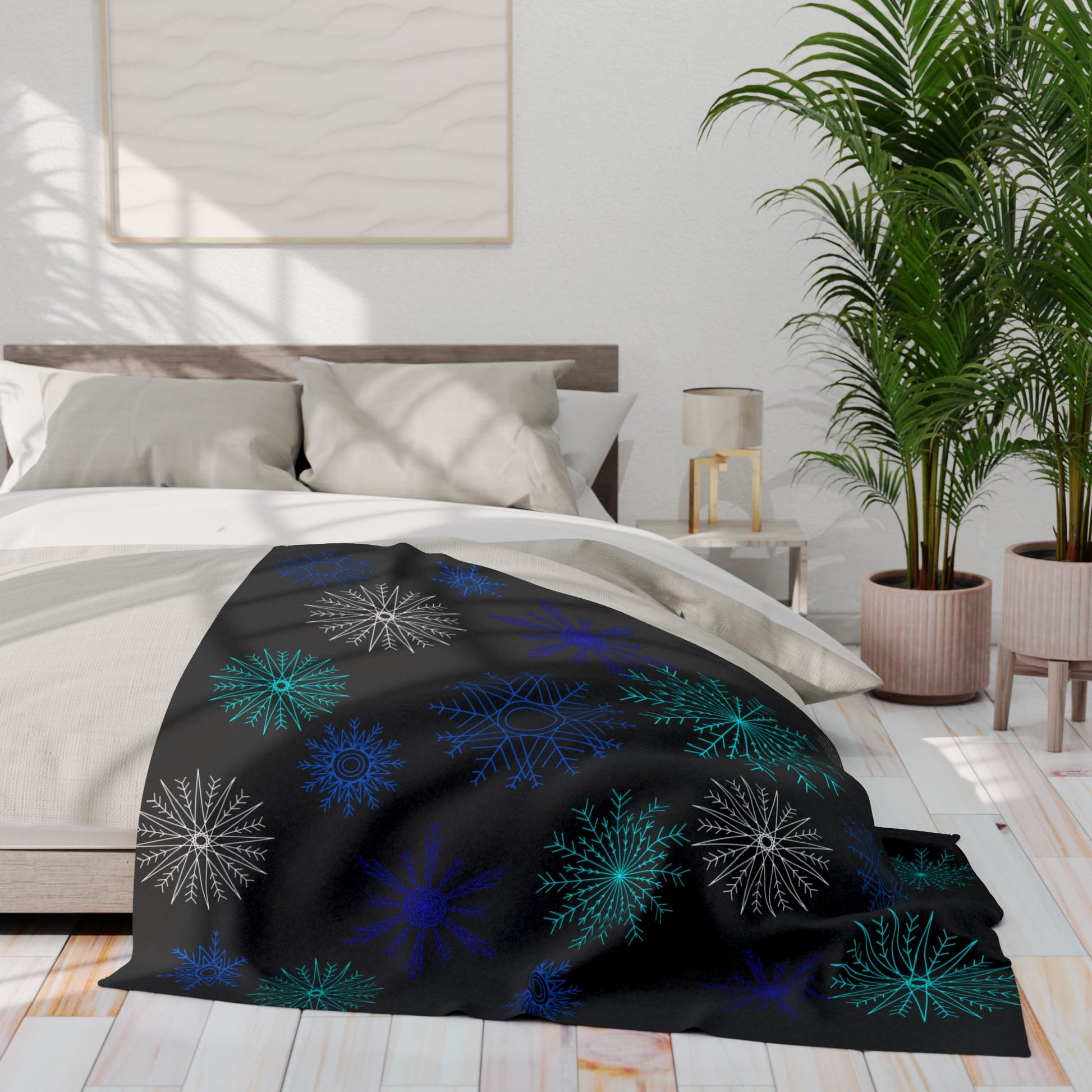Enjoy cuddling up under our beautiful Snowflake pattern with this warm and fuzzy fleece blanket. Beautiful and fun gift ideas too!