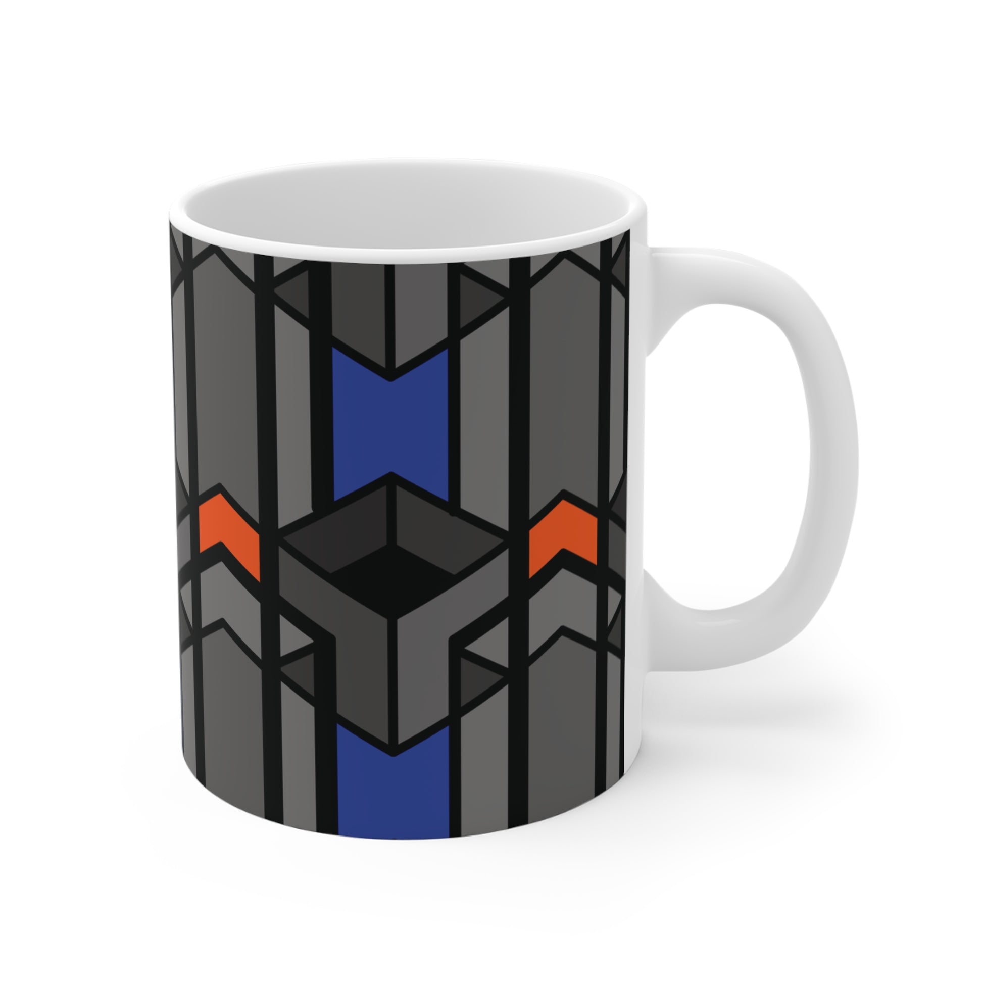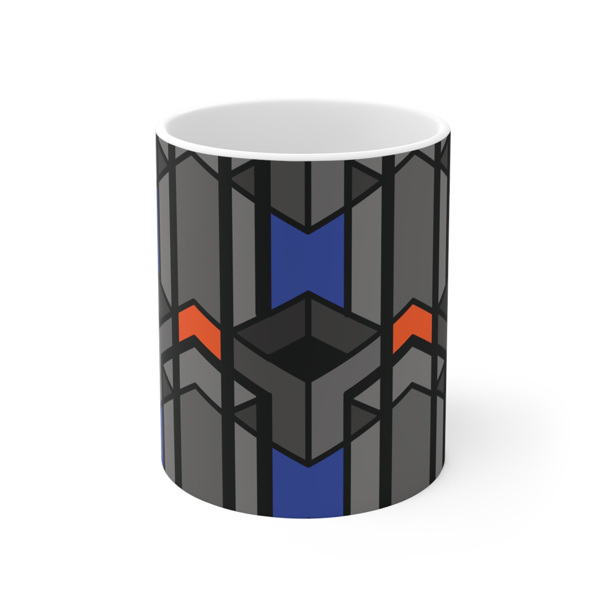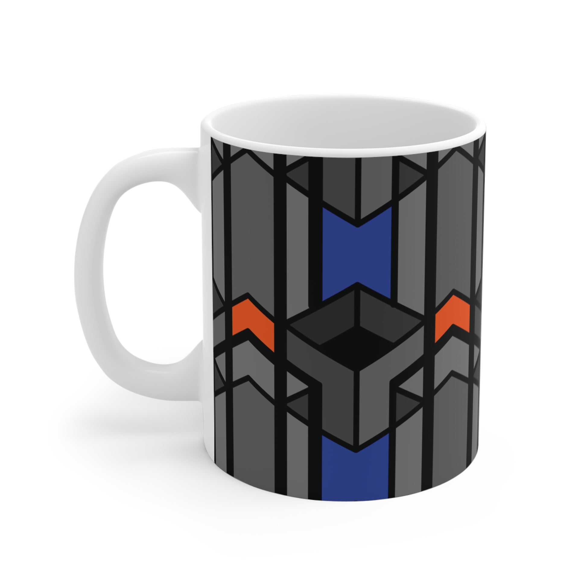 11 oz. ceramic mug with comfortable C-shaped handle. Mug is lead and BPA-free. Microwave and dishwasher safe.
