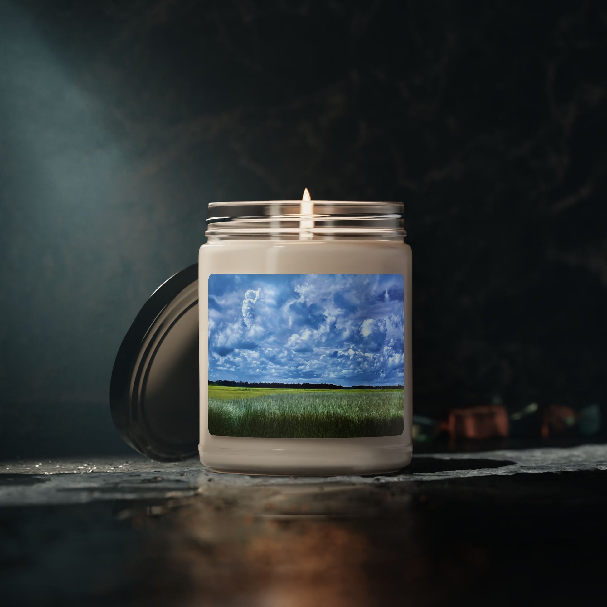 Enjoy the beauty of a Savannah marsh with this original photograph printed on the side of this candle. Scented with sea salt tones on top of a complementing jasmine and lily of the valley with hints of green leaves and nutty warm wood tones.