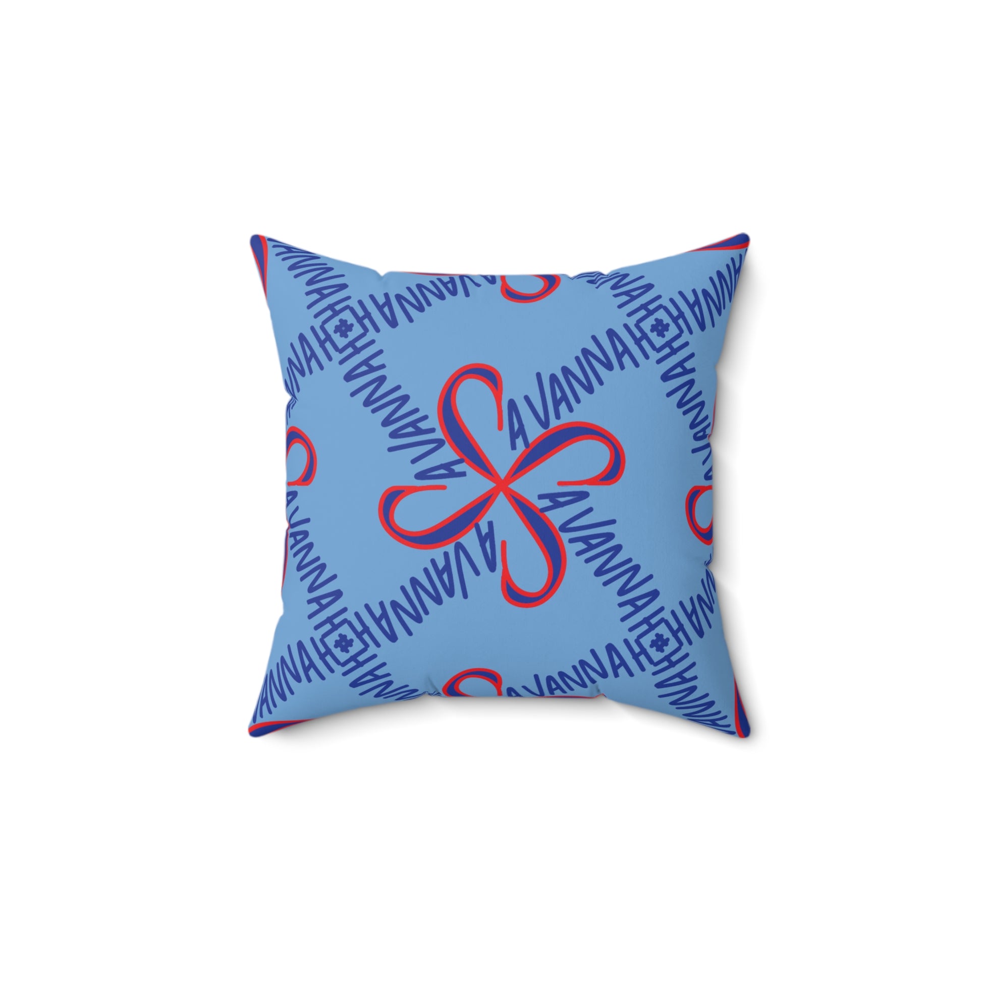 Show your love of all things Savannah with this fun patterned pillow created with our iconic Savannah Squares in mind. A beautiful blue sky backdrop adds sophistication to this whimsical pattern.