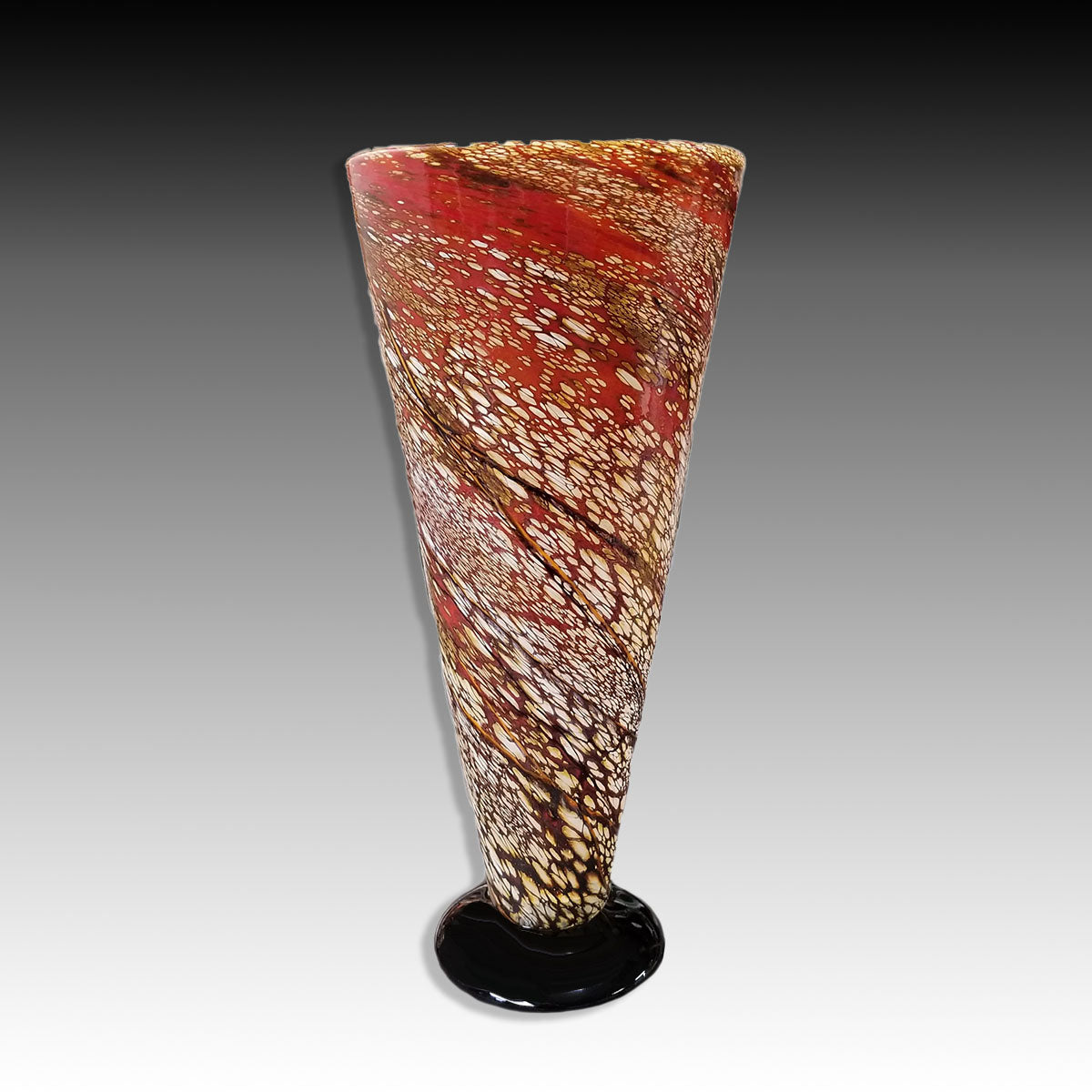 V Lamps are simple accent lights with clean lines. They are made of a hand-blown glass created in a cone with black glass base.