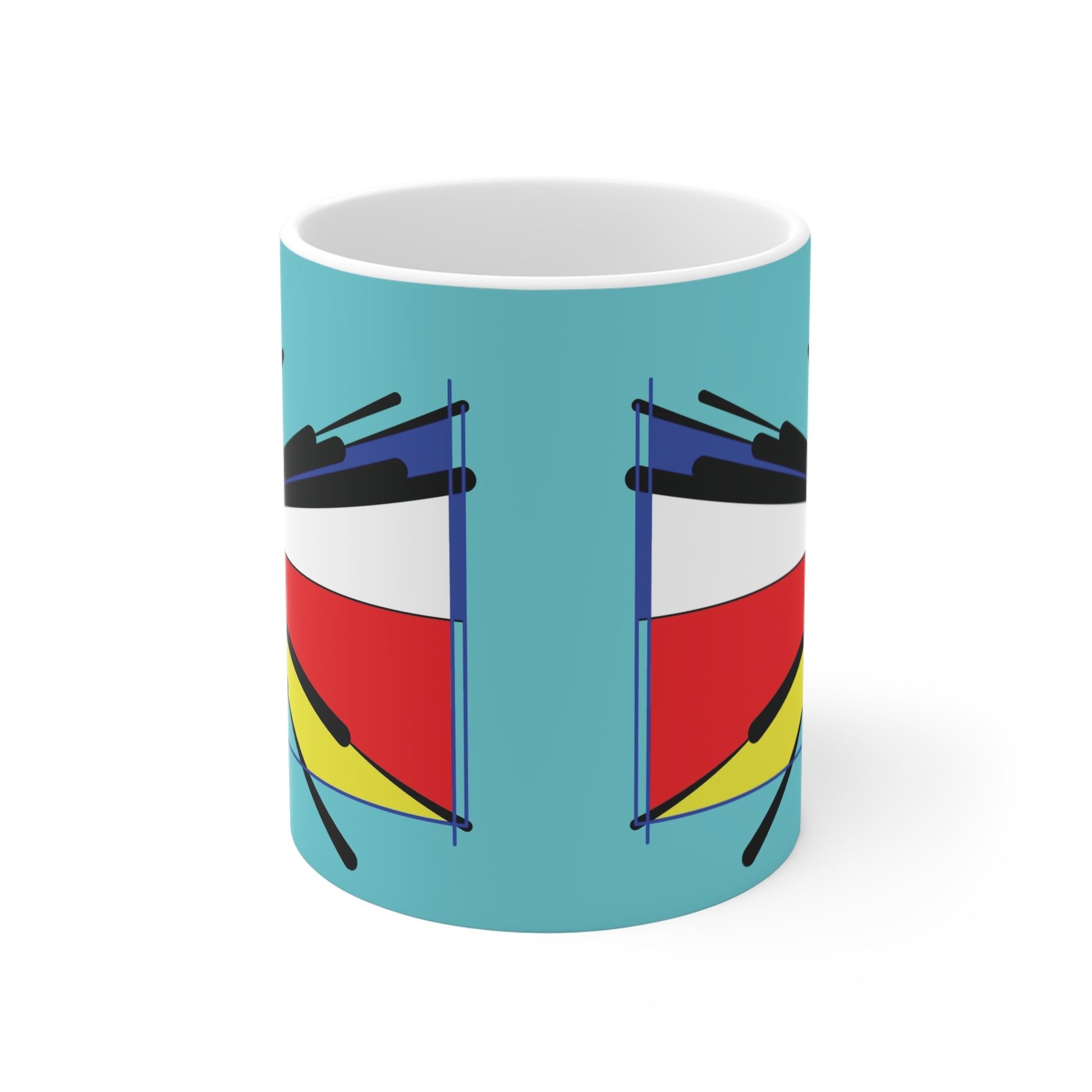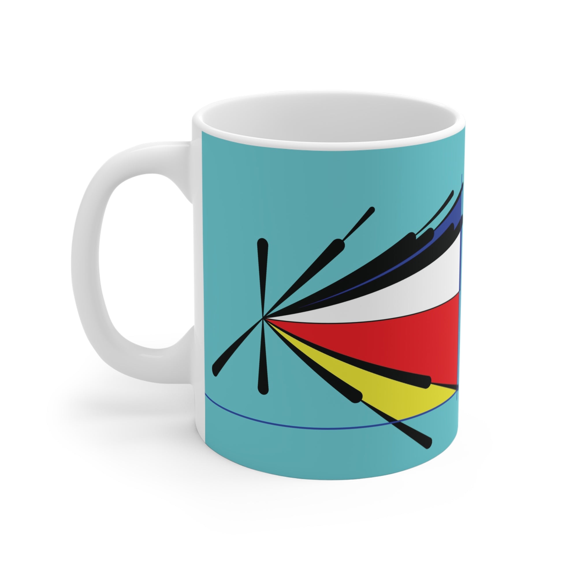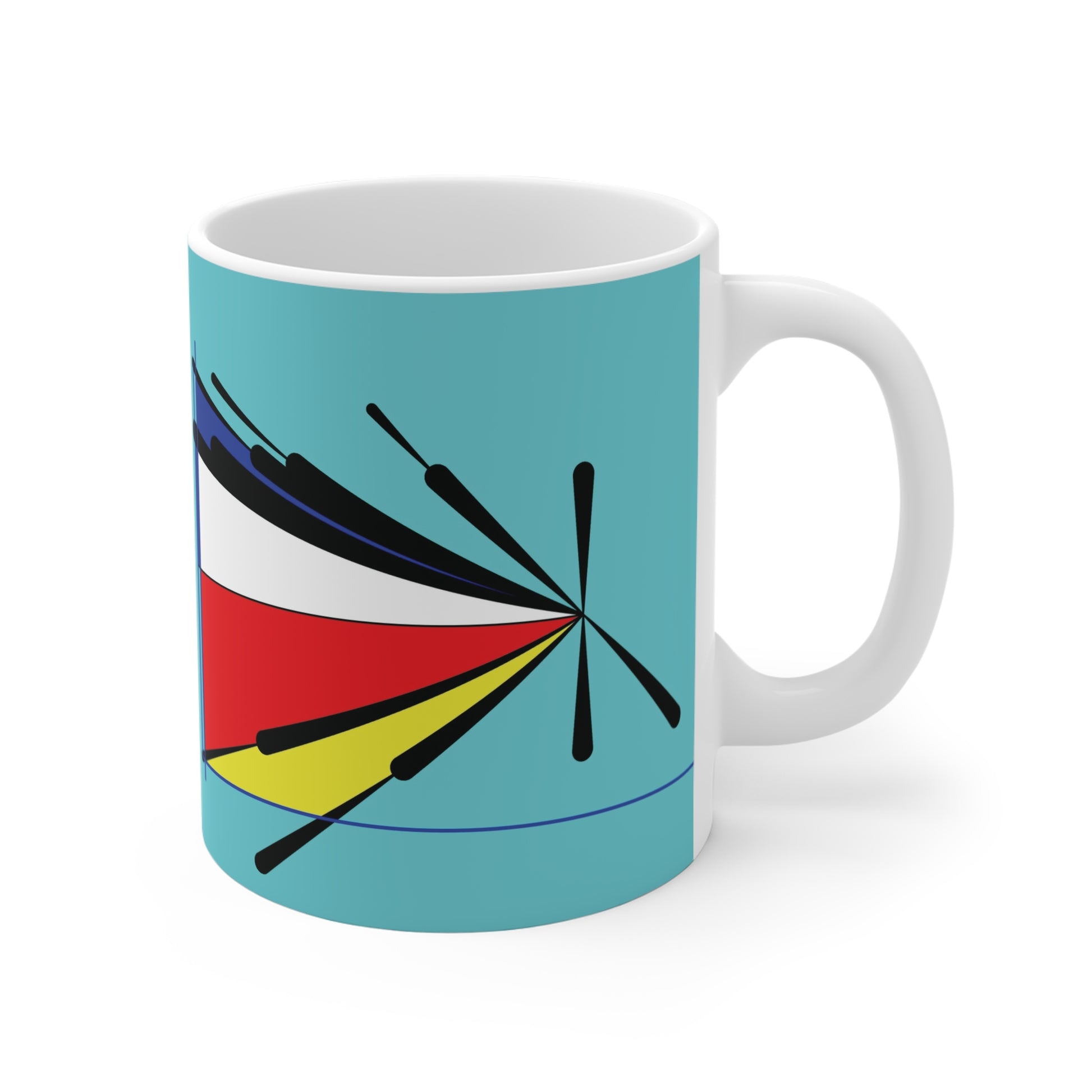 11 oz. ceramic mug with comfortable C-shaped handle. Mug is lead and BPA-free. Microwave and dishwasher safe.